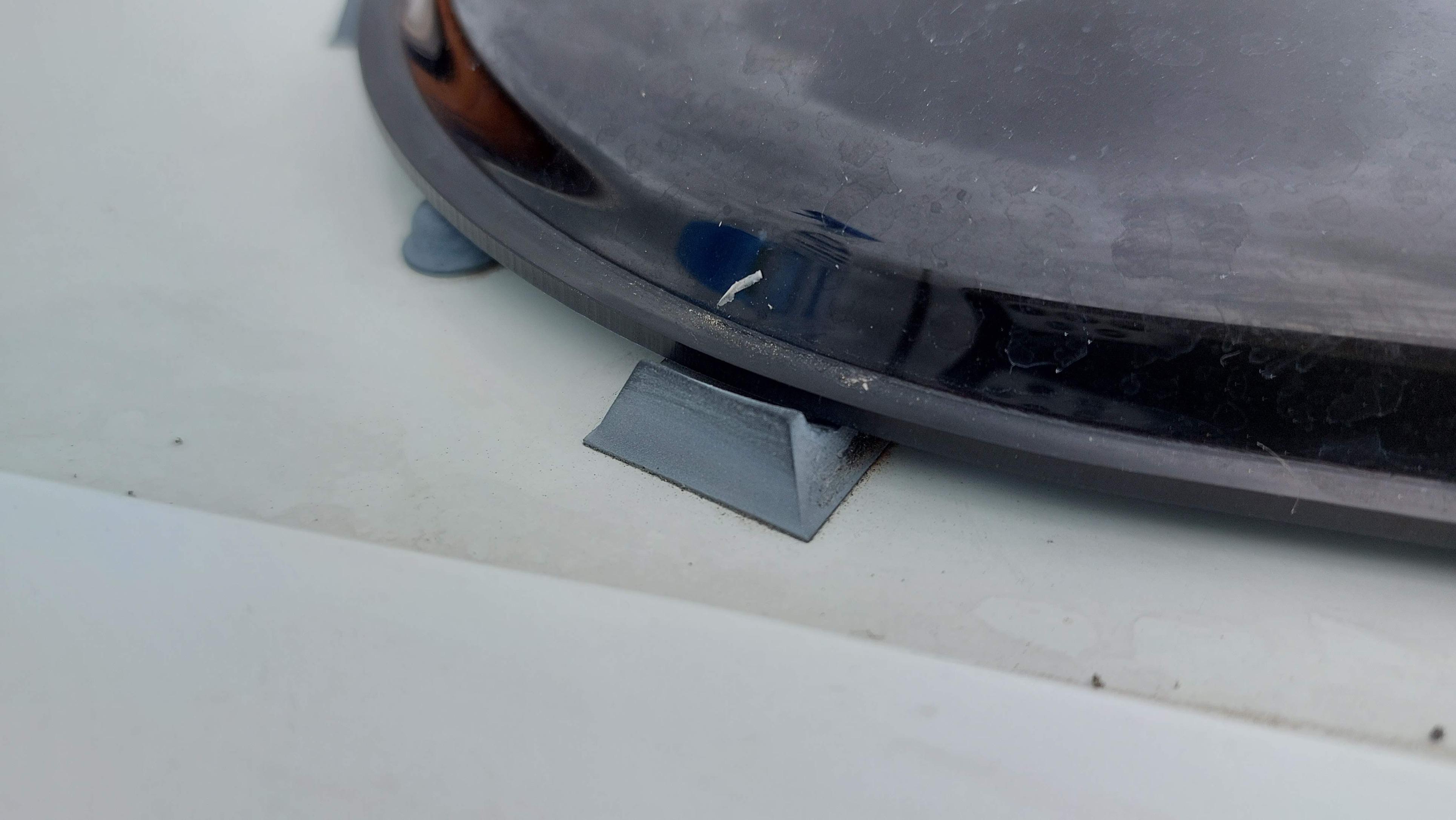Auf dem Dach habe ich selbstklebende Gummipuffer angebracht, die fuer einen gleichmäßigen Abstand von ca 3 mm sorgen. Die Puffer habe ich mit einer kleinen Kerbe versehen, in der die Dachhaube geführt wird. Ein glatter Puffer hat sich nicht bewährt, hat sich mit der Zeit verschoben. LG und weiterhin viel Spaß auf deiner Tour von Ralf