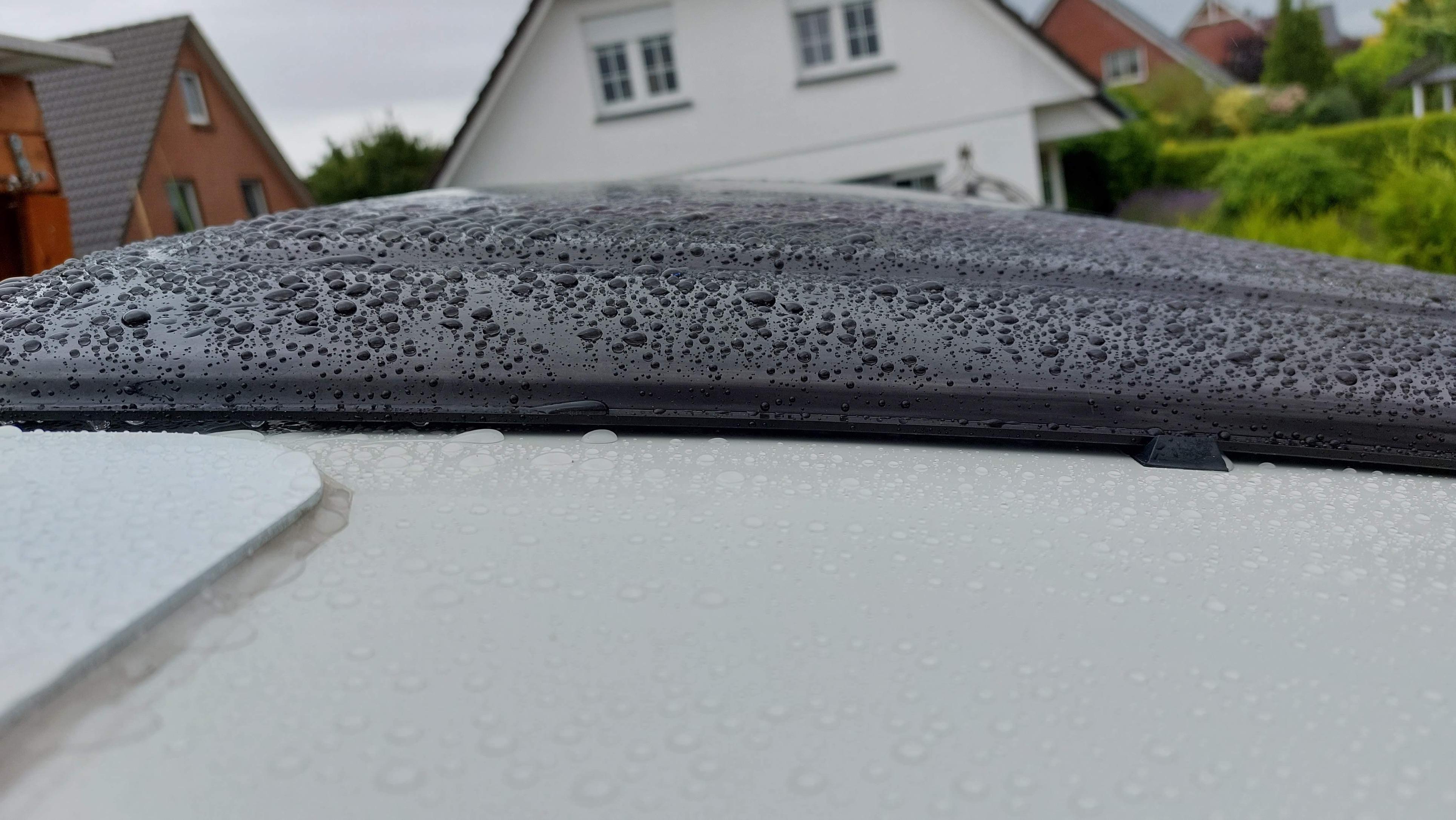 Hallo Rainer, seit 1,5 Jahren verfolge ich dieses Thema mit " Begeisterung", denn auch unser Fahrzeug ist von diesem Mangel betroffen. Kurzzeitig habe ich gedacht, dass mit dem Einbau einer größeren Dichtung das Problem behoben ist, leider ist dies scheinbar nicht der Fall. Mein Fazit zur Problematik : die Konturen und Woelbungen vom Dach und Skyroof passen einfach nicht zusammen. Gerne möchte ich hier meine persönliche Lösung darstellen, soweit es nur das Scheuern auf dem Dach betrifft und nicht eine Undichtigkeit. Diese " Lösung" funktioniert seit 10000 km.