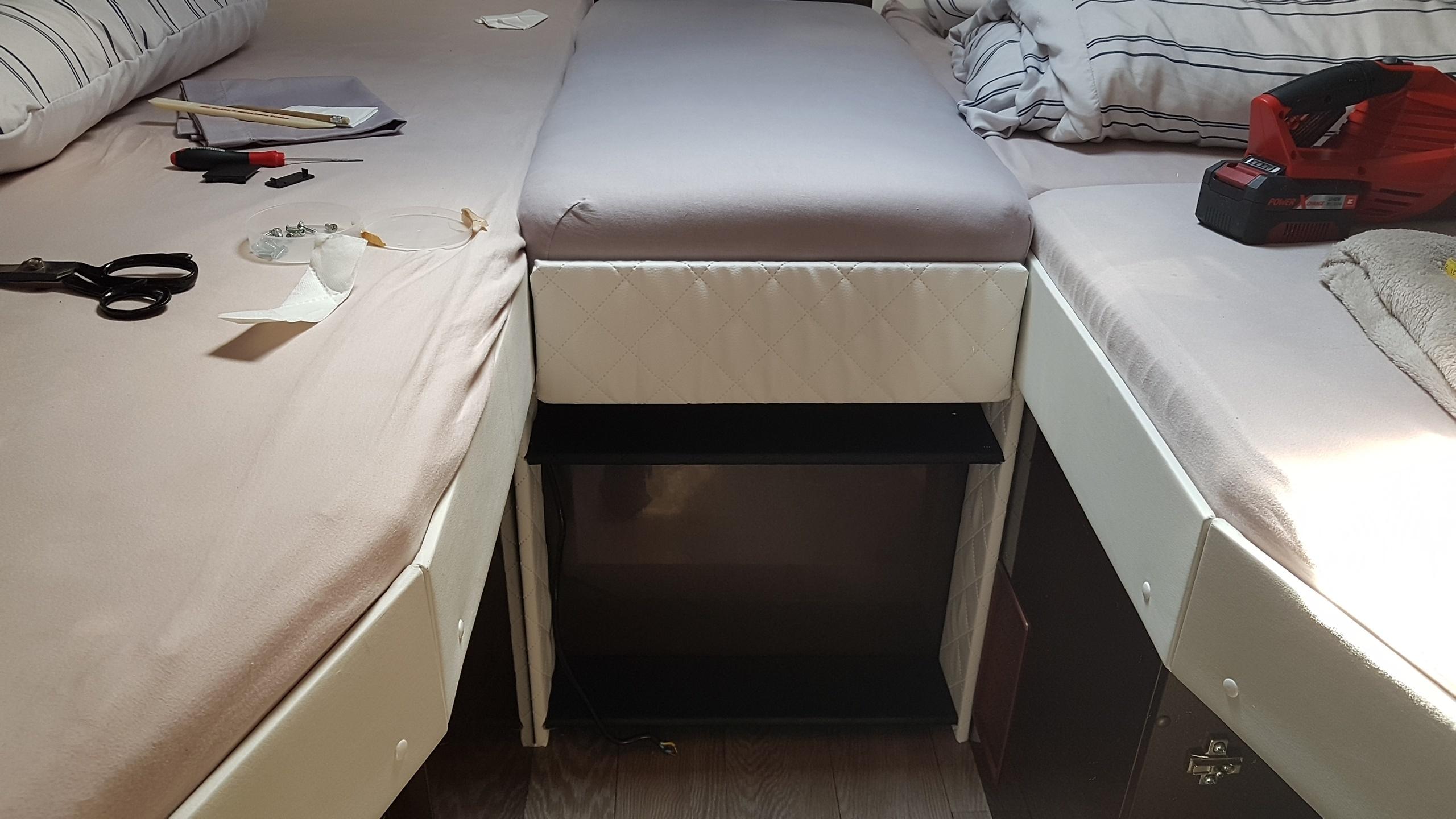 Hallo Tom,auch ich habe gerade mit dem Zwischenpolster nachgerüstet. Das Maß ist 107 Mal 47,5 mal 17 cm. Sitzt alles schön stramm zwischen den Betten. Damit die Kaltschaummatratze am " Fussende " aufliegt und einen Anschlag hat, habe ich eine kleine Regalfläche angefertigt. Ablage für Handy Fahrradakku und so weiter.