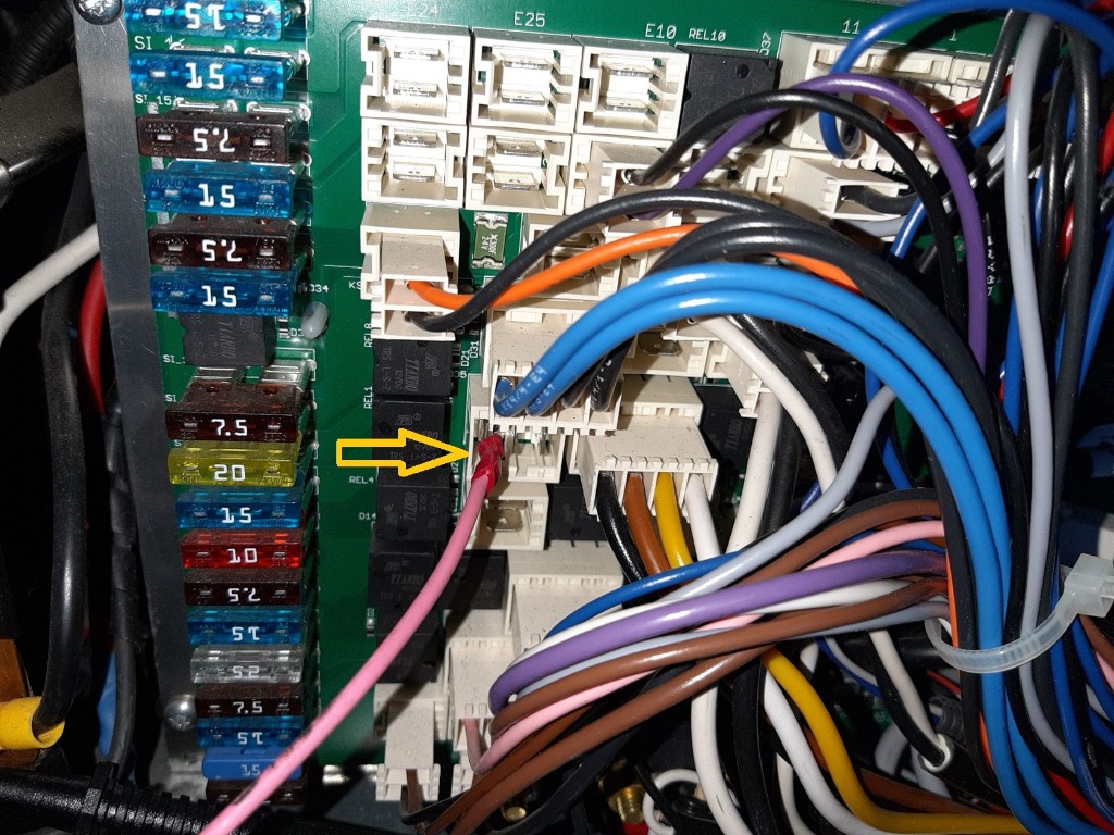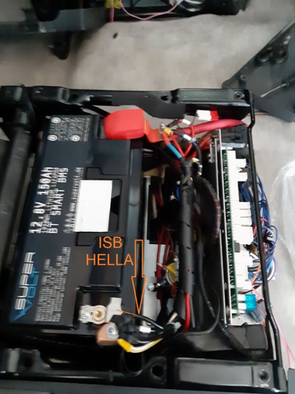 Die Kabel so gut wie möglich aufräumen, dabei hat ein gebrochenes Kabel vom ISB Hella das Batteriesignal auf dem zentralen TFT-Display verloren. Gelöst...