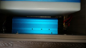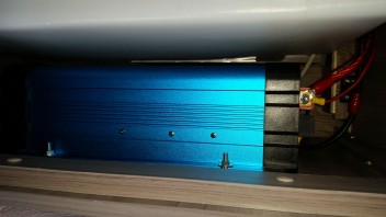 Wir haben gestern gesehen, daß der Wechselrichter genau unter die Sitzbank mit dem Wassertank passt, als wäre er dafür gebaut worden.