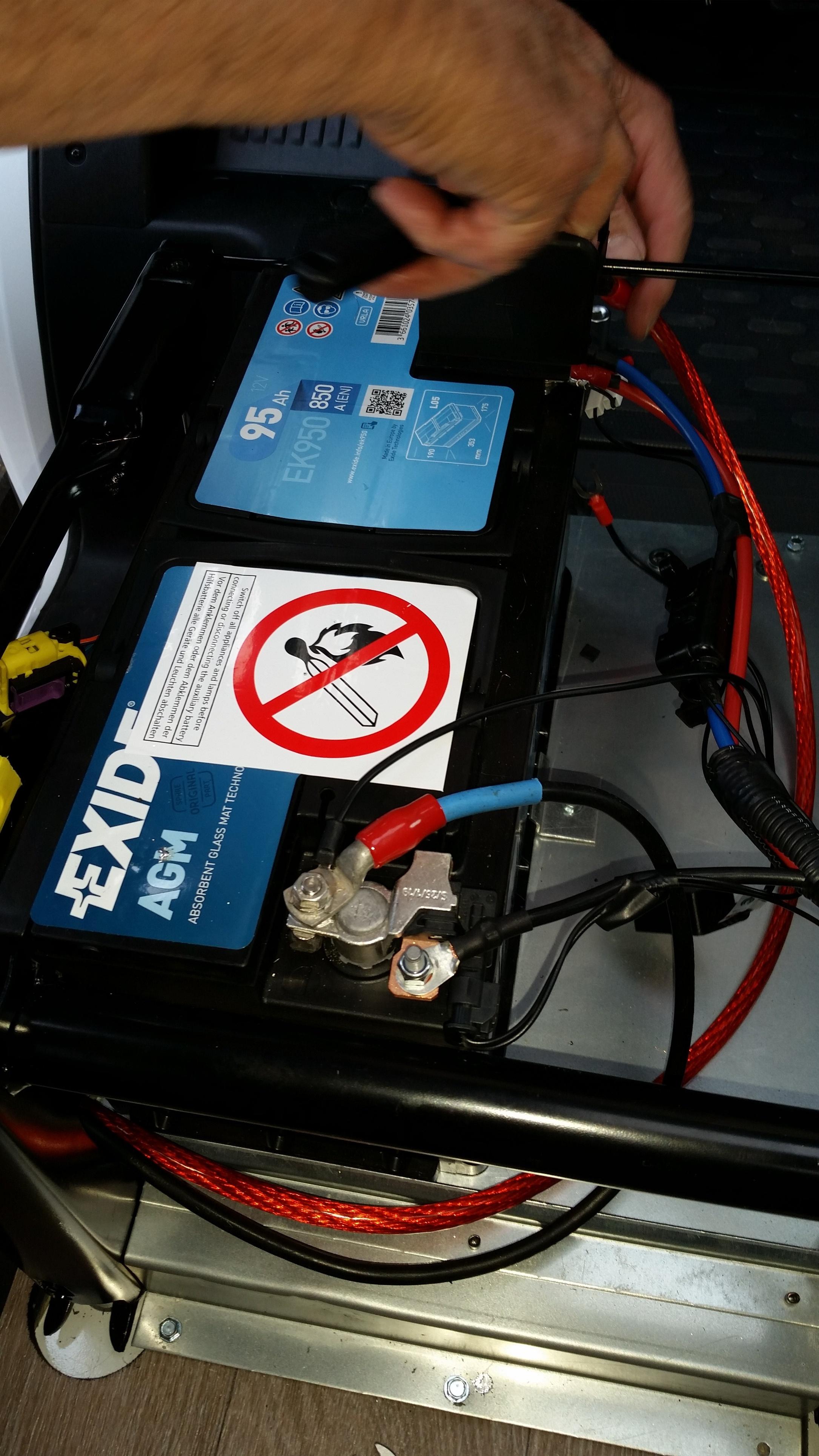 Die 12V-Kabel können dort auch prima nach vorne unter den Fahrersitz verlegt werden, wo die zweite Aufbaubatterie sitzt. Heute müssen wir noch die Anschlussarbeiten durchführen. Ich werde demnächst mal ein paar Bilder posten.Gruß