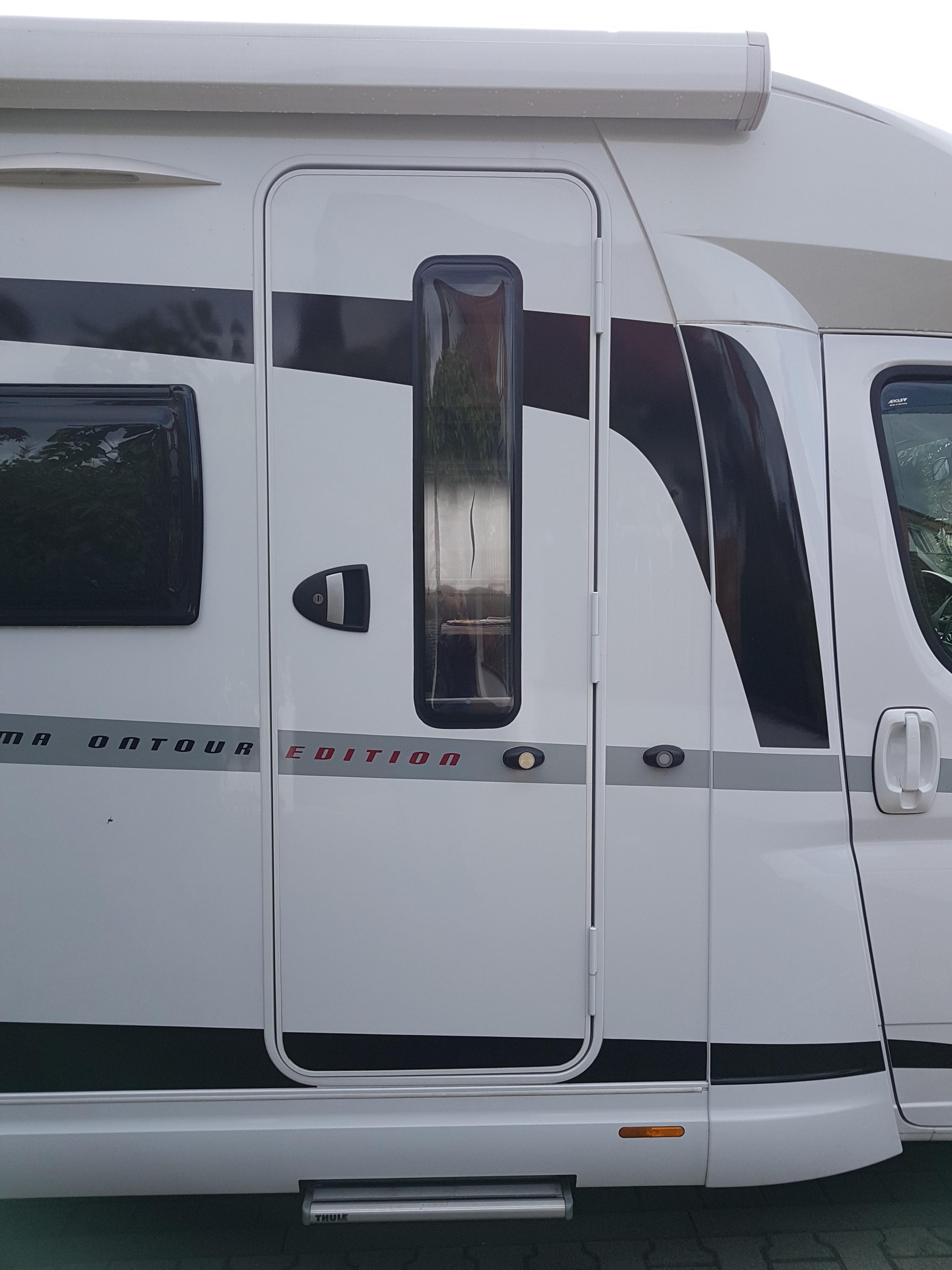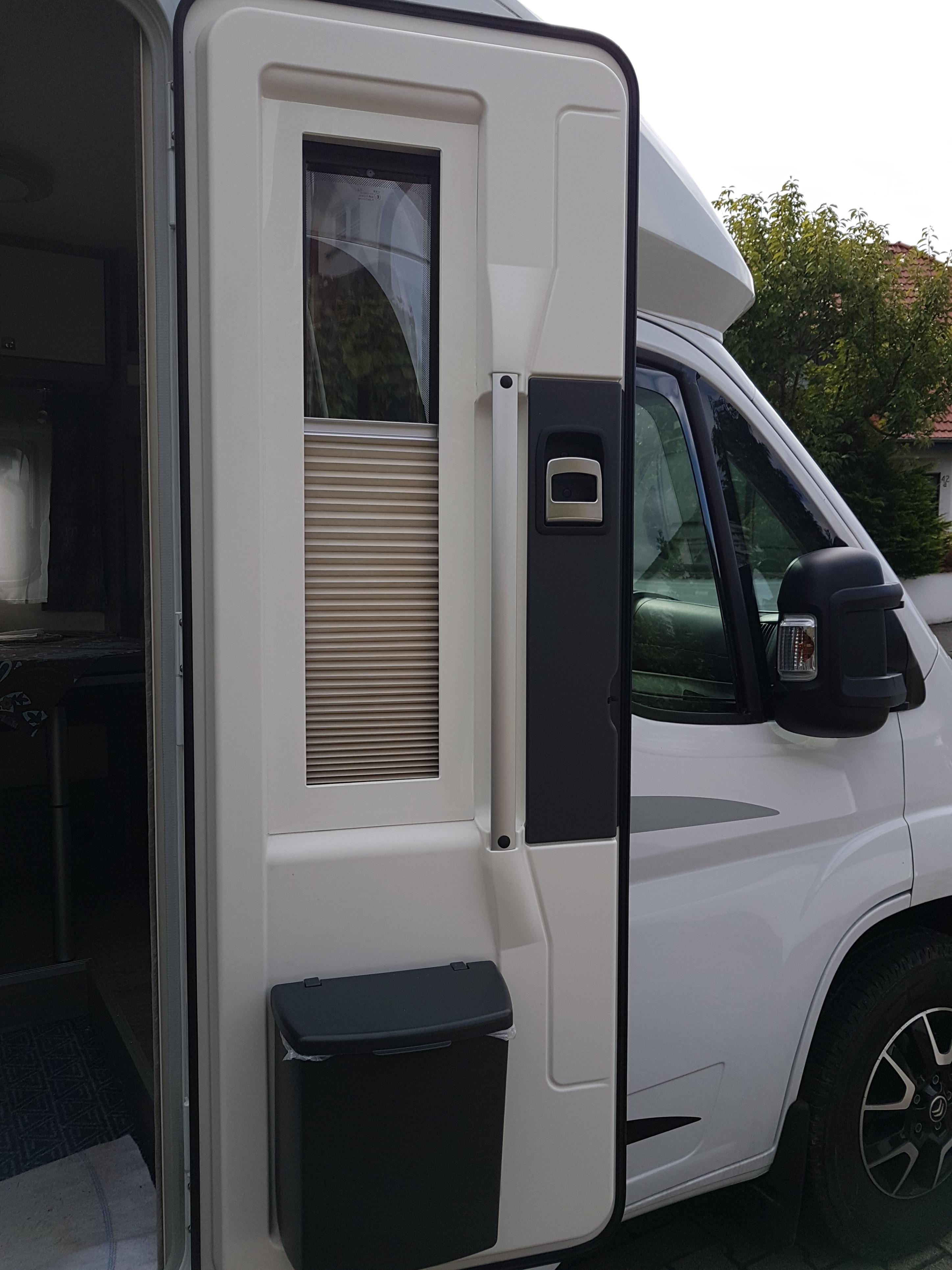 Unser Wunsch war von Anfang an ein Fenster in der Aufbautür. Zur Wahl standen eine Komplett neue Tür oder in die bestehende