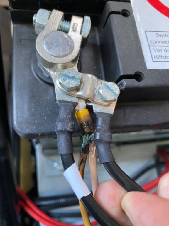 Bei der Demontage des Sitzes ist mir das verschmorte Kabel aufgefallen.