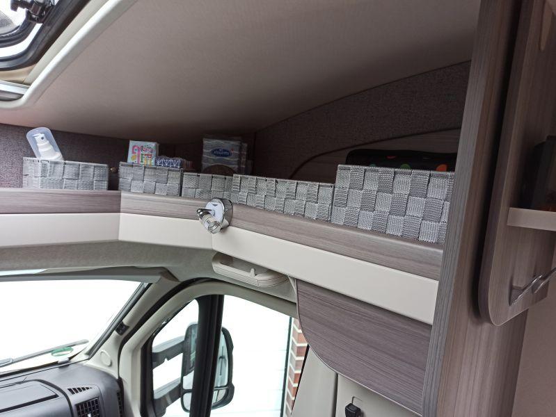 1- Wie schon in anderen Beiträgen dargestellt, habe ich auch zusätzliche Leseleuchten (Dimatec LED Leseleuchte mit USB/ Camping Wagner) bestellt und installiert. Den Strom habe ich mir von den Leuchten über dem Tisch geholt. Ach ja, die Behälter auf dem Foto gabs bei Lidl und Aldi und passen perfekt in die umlaufende Ablage.