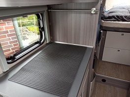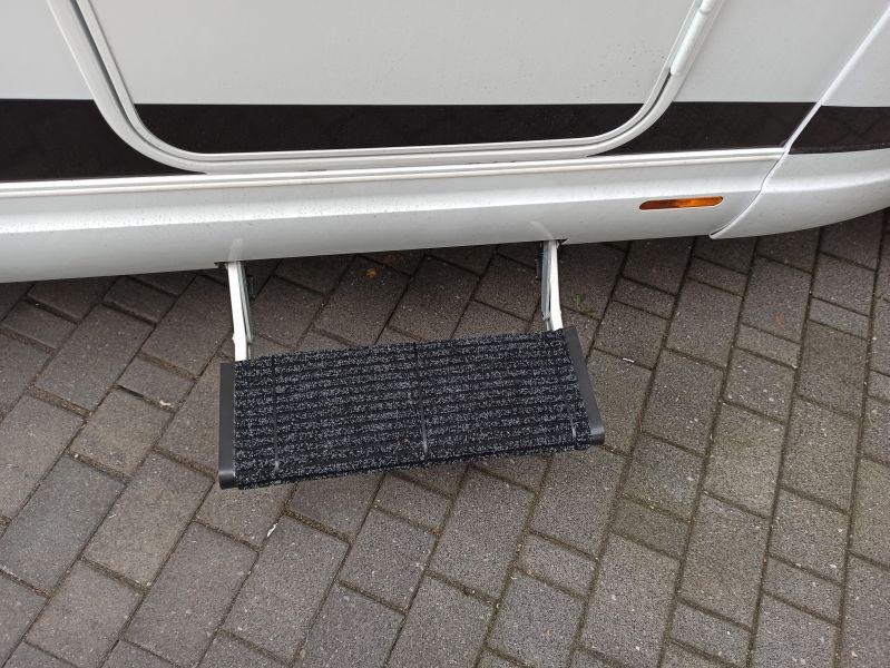 11- Unser Hund mochte die Serienmäßige Alu-Trittstufe nicht, war ihm zu rutschig. Ich habe eine Außenfußmatte für 5 Euro geholt und mit 3 Kabelbindern befestigt. Jetzt rutscht nix und er geht ohne Probleme in den Wagen.