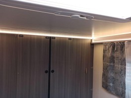 8- Die Beleuchtung im Schlafbereich mit dem Queensbett ist m. E. eine Fehlkonstruktion:( . Wenn man das Queenbett nach hinten schiebt, kommt man nicht mehr an den Schalter für die Leseleuchten. Zudem ist dieser auch nur durch Klettern erreichbar. Ich hatte im Keller noch eine Kombi von Leuchtschlauch und Fernbedienung, diese hatte ich mal bei amazon oder ebay gekauft. Den Strom habe ich aus der Garage von der Lampe dort geholt und nach oben in den Kleiderschrank durchgebohrt.