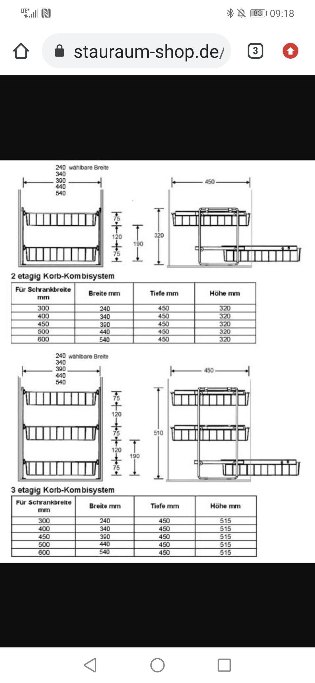 Ich denke, dass das Korbsystem für 450mm Schränke reinpasst. Ohne den Türanschlag ändern zu müssen.Gruß Dirk