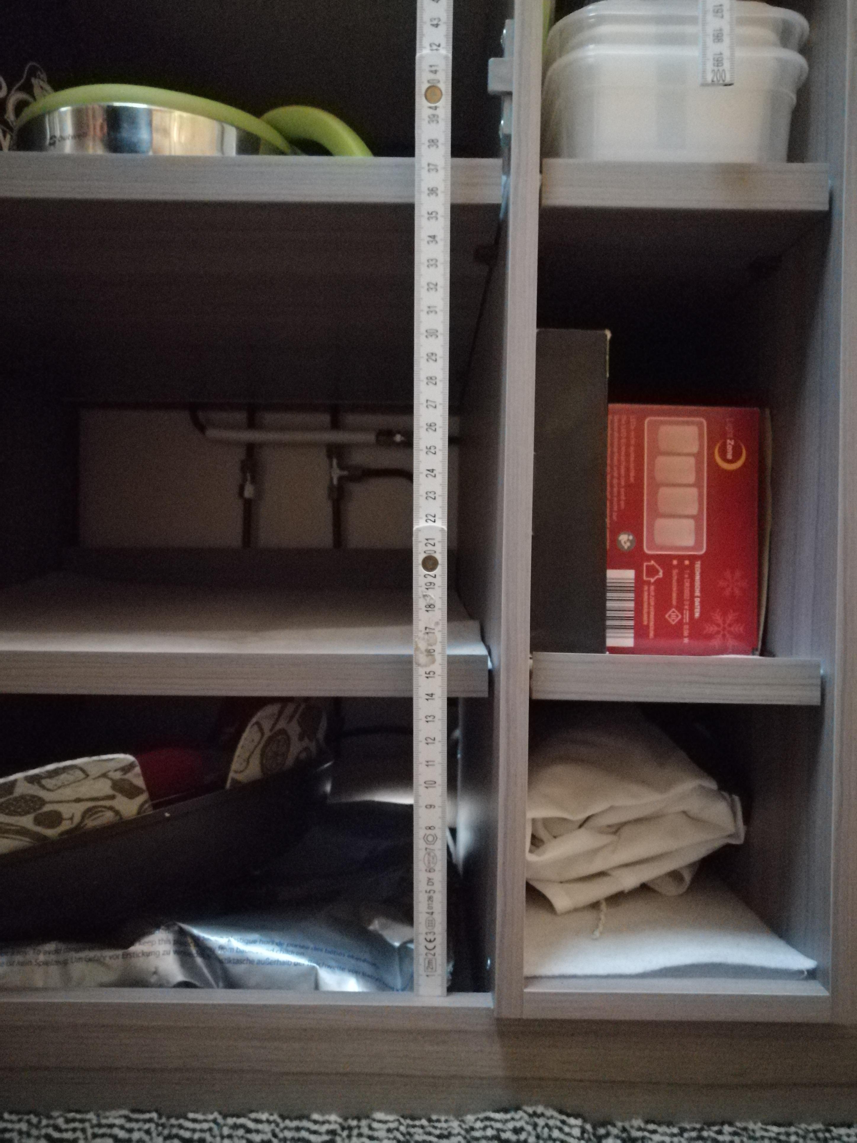 anbei noch ein paar Bilder.Ich denke es passt, je nachdem wo du den unteren Einlegeboden haben möchtest, ich werde den Boden ca. da lassen wo er jetzt ist.