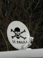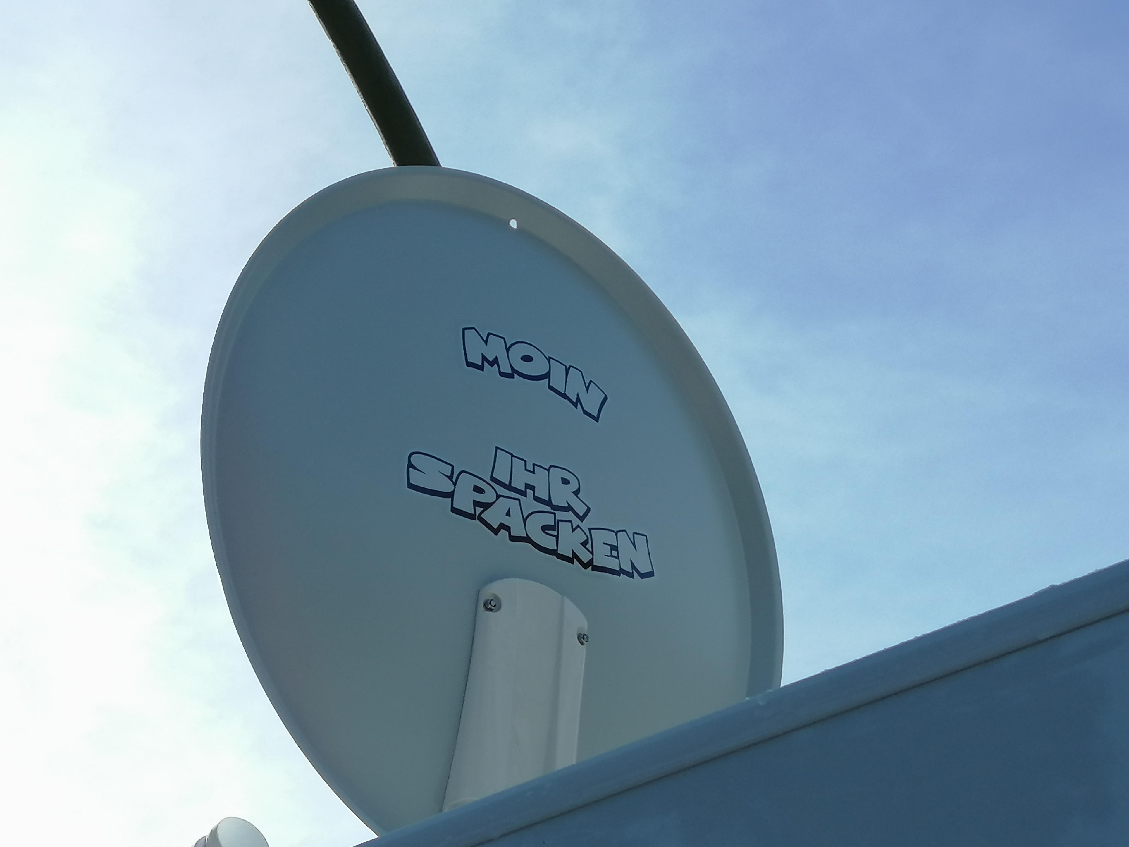 1. Aussen: Satellitenschüssel gepimt + Kondensatablauf der Truma