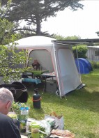 Wir haben schon seit Jahren einen Pavillon von Decathlon 3x3m damit ist man flexibel, braucht nicht immer die Seiten und Frontteile demontieren wenn mal wohin fahren möchte/muss . Man Parkt daneben und kurbelt die Markise raus und kommt trocken in den Pavillon.Gruß Dirk