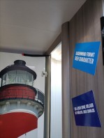 ich habe mit Klettband einen Türanschlag gegen das zu weite aufschlagen der Badtür montiert. In unserem 2021er Modell kollidiert die Badtür nicht wie bei den älteren Modellen mit der Kühlschranktür. Das Klett hält bei normaler Benutzung der Badtür vollkommen ausreichend und ist rückstandslos Rückbaubar.