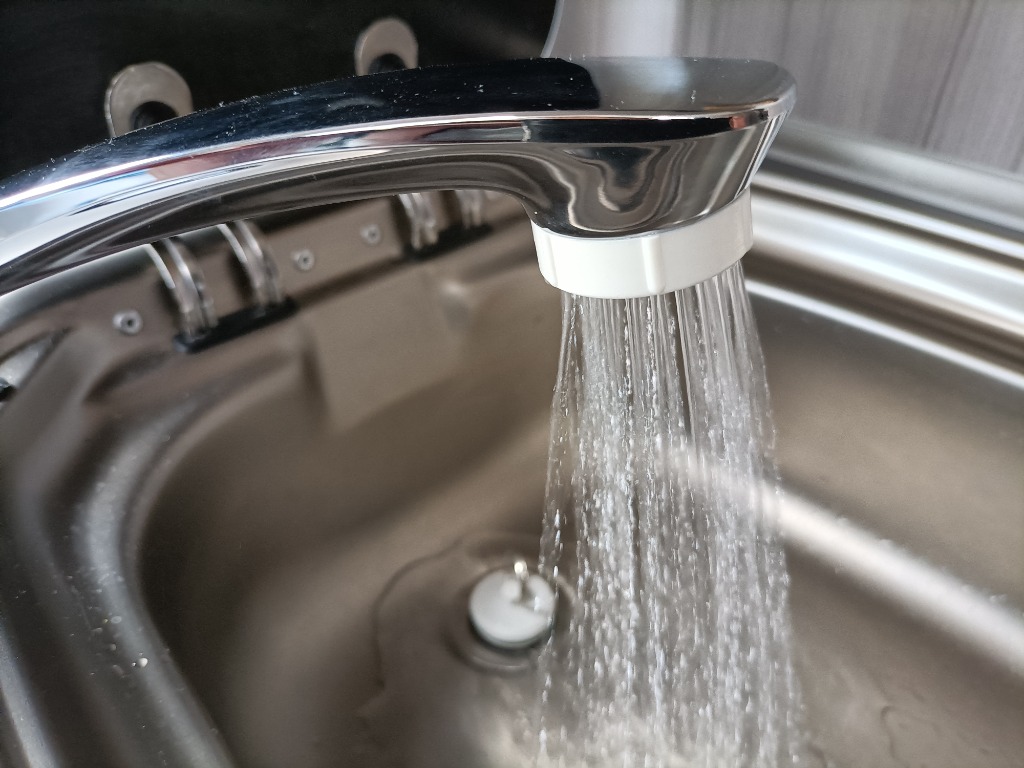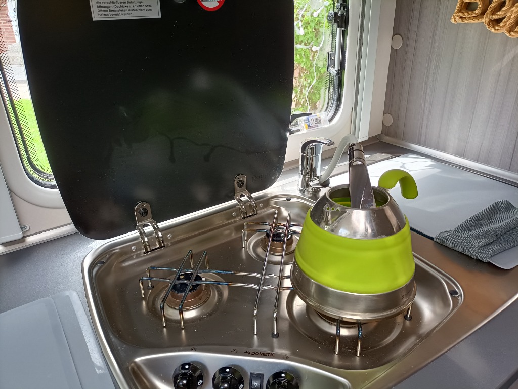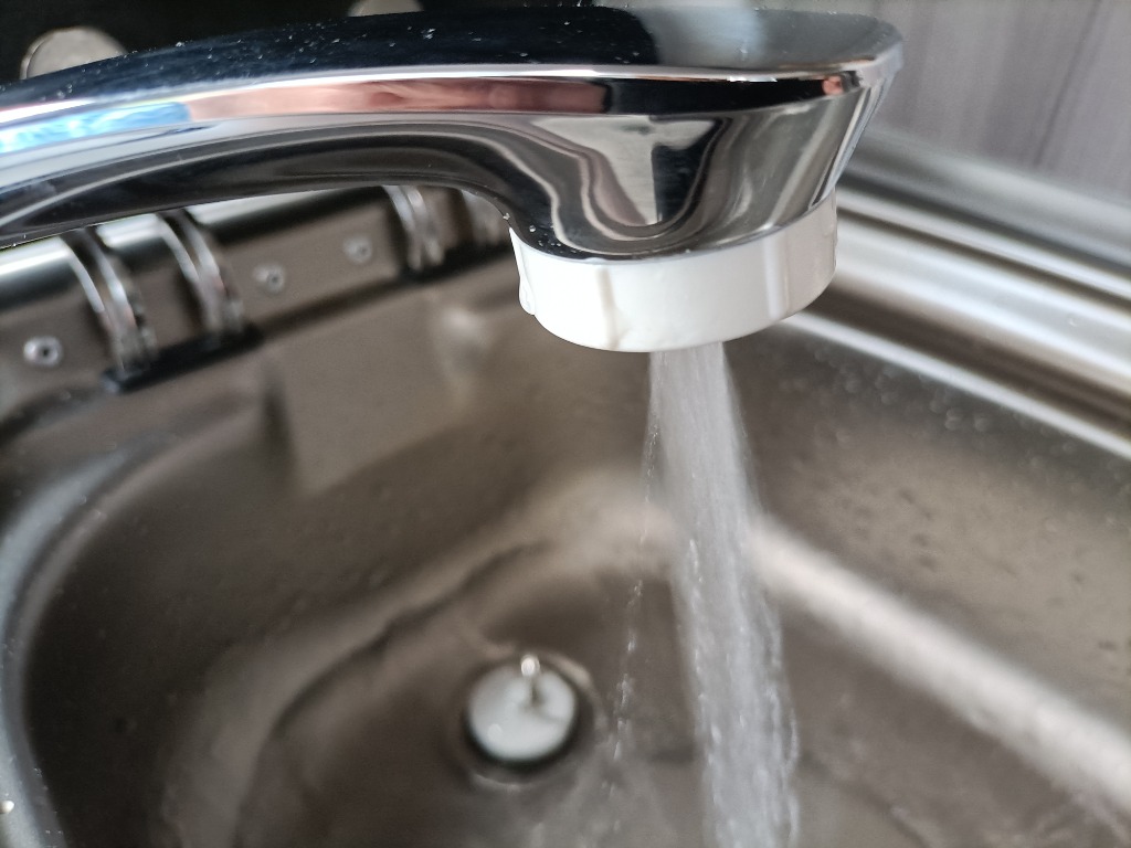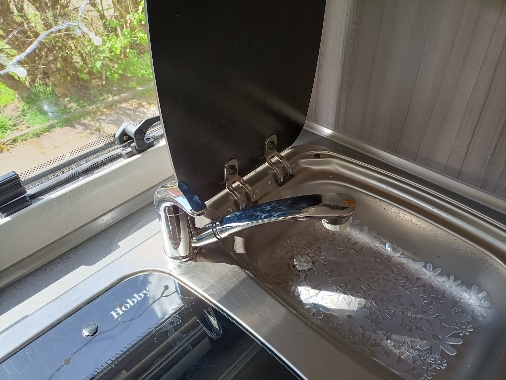 So kann sie als Außendusche benutzt werden oder falls morgens mal in der Küche Wasser gezapft werden soll ohne, dass die Spülenabdeckung geöffnet werden muss.