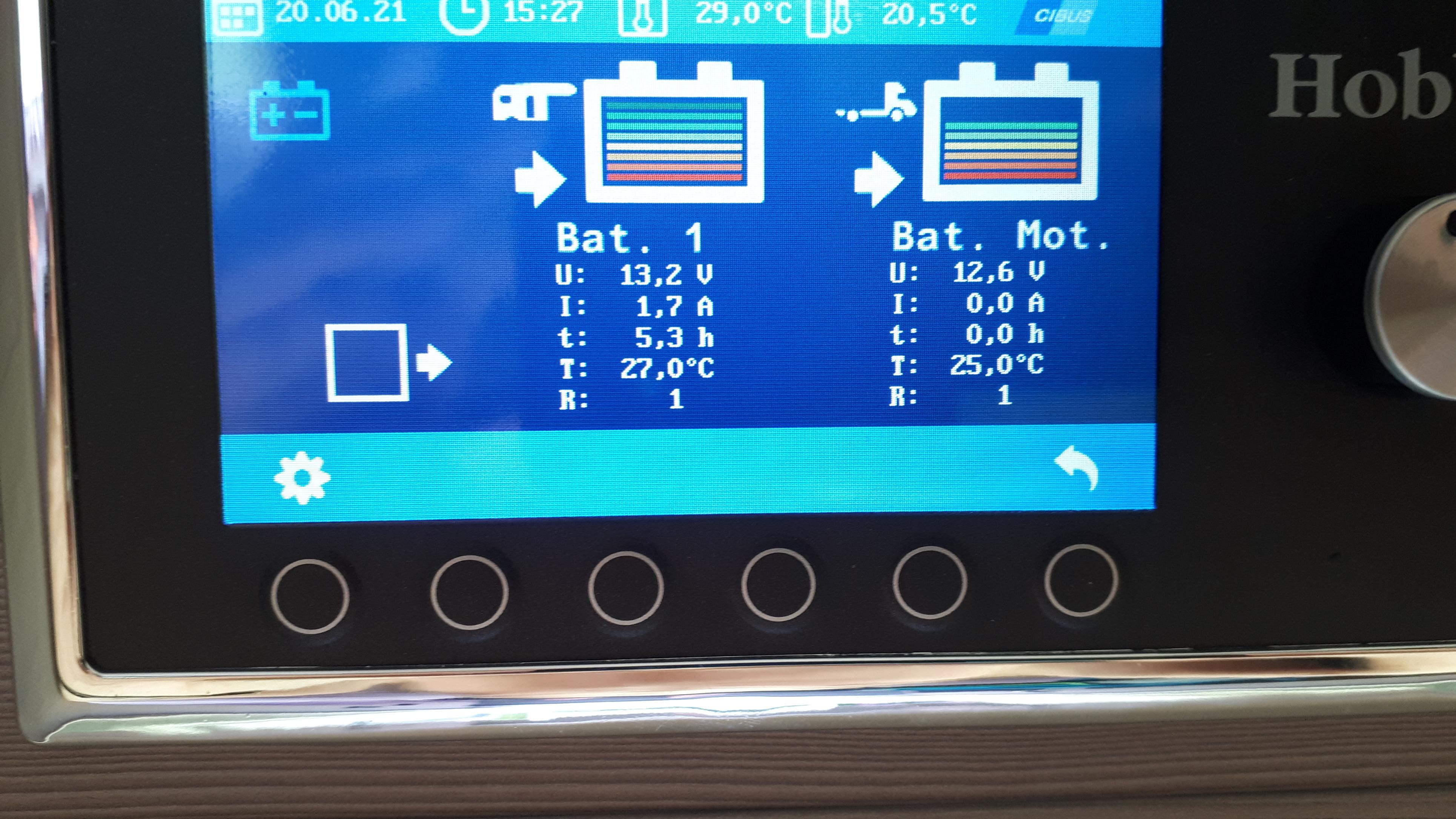 das Problem hatte ich letztes Jahr auch, wo ich eine neue Gelbatterie eingebaut hatte.( Mittlerweile habe ich eine Lithium). Azf deinem Bild sieht es so aus, als ob die Aufbaubatterie nicht erkannt wurde. Bei R sollte eine 1 stehen. (Siehe Bild). Probier mal den 12V Kreislauf komplett abzuschalten und nach kurzer Wartezeit wieder einschalten. Hatte bei mir geholfen.