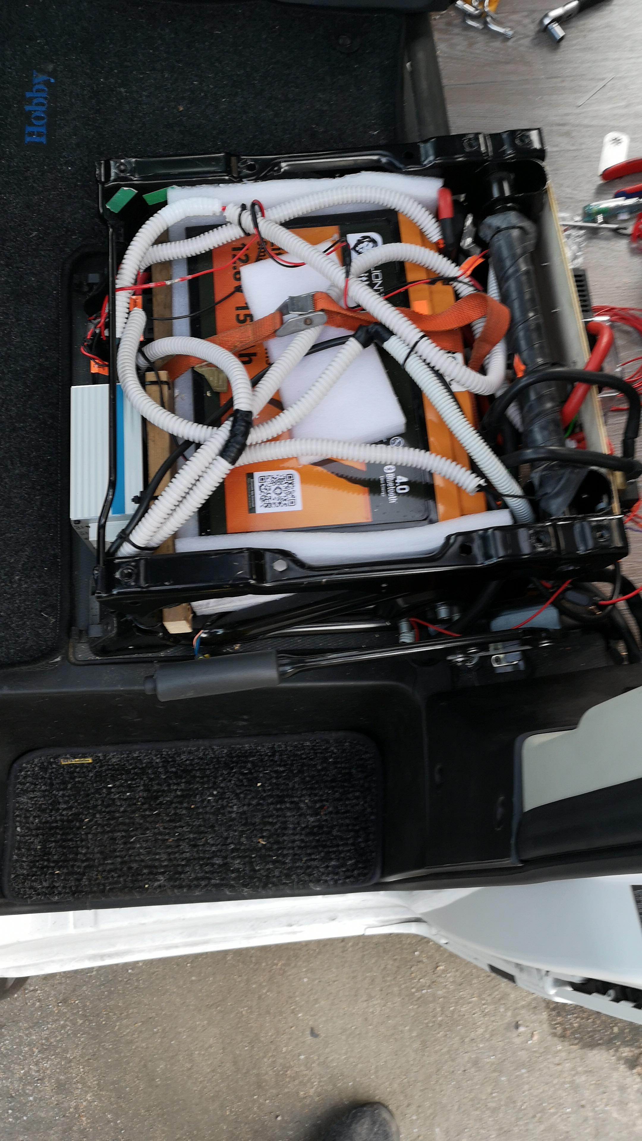 Bord-batterie (150Ah Liontron arctic) ist jetzt unterm Fahrersitz, der Beifahrersitz hat jetzt dank Caratec subwoofer ne massage-Funktion.....