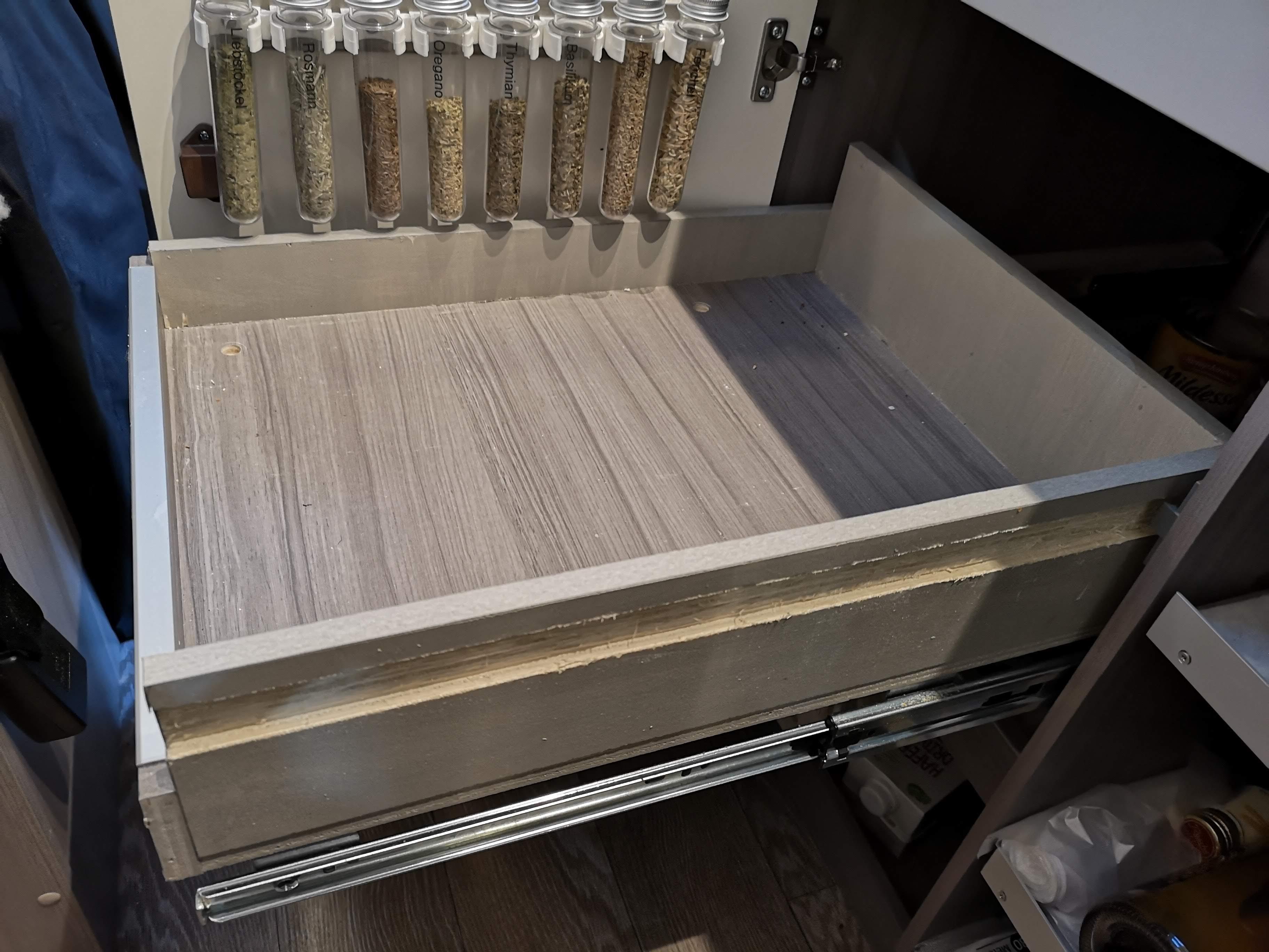 Zu den Schubladen in der Küche: due hab Ih mir selber eingebaut: