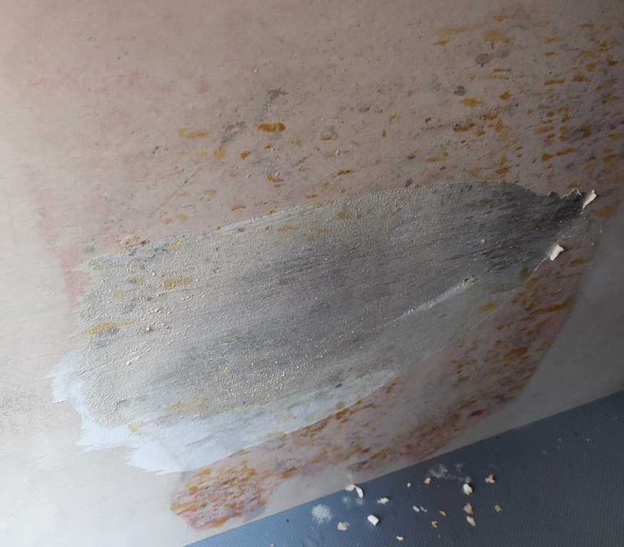 Nachdem ich den Befall erstmal mit derr Handy gereinigt hatte, hat sich die Schutzfolie/Lackierung entfernt.Das Holz selbst hat einen Stabilen Eindruck, ich möchte demnächst nochmal mit einem Reinigungsmittel dran um den Schimmel Endgültig auszutreiben und anschließend muss ich das ganze ja wieder Lackieren.