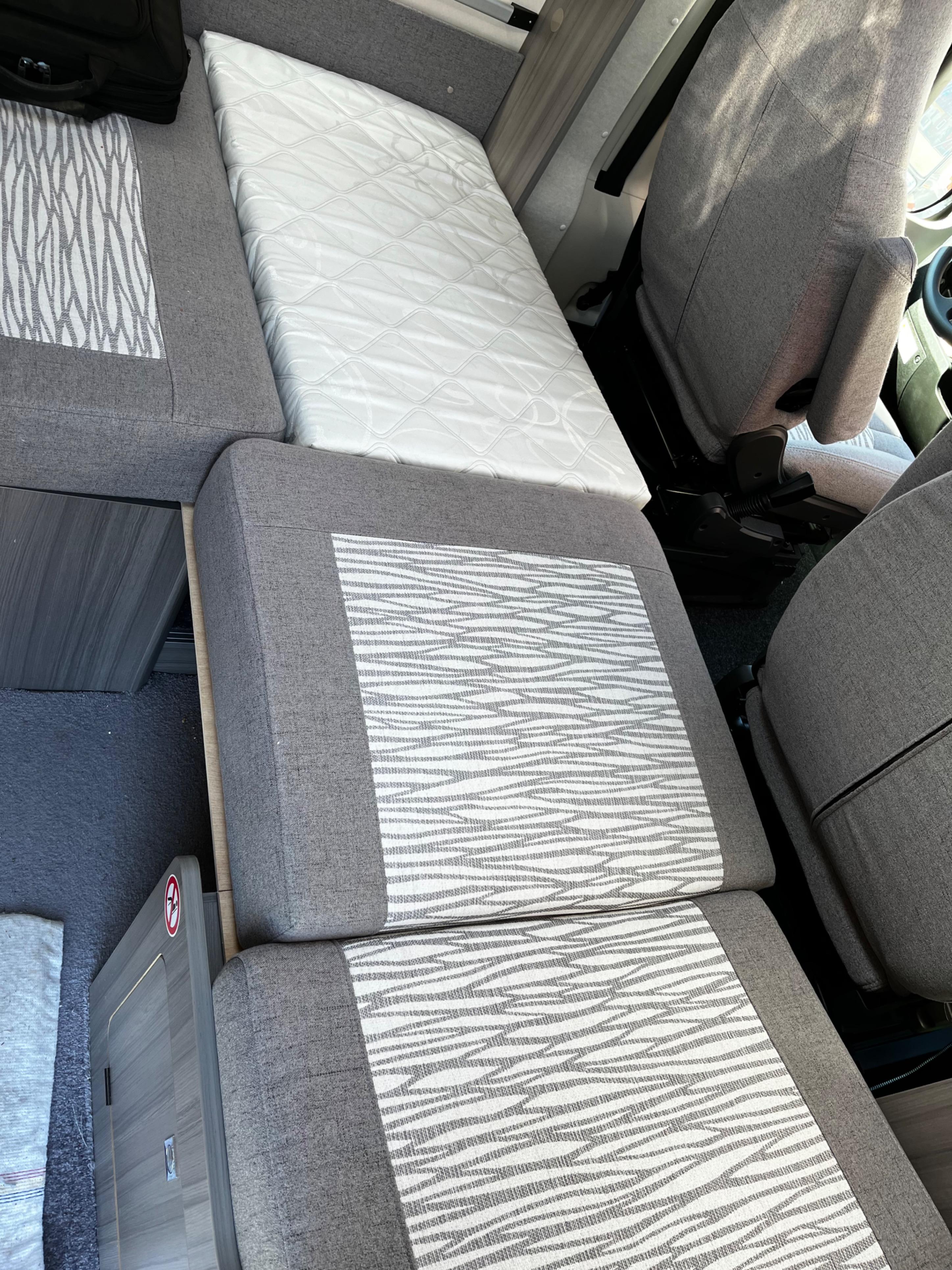 Wir haben uns zusätzlich noch ein Toppinig von Ikea zugeschnitten und passend abgenäht, damit man auch gut schlafen kann.