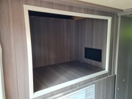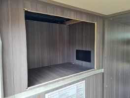 Rudi auf dem Forumstreff hat mir dann eine praktische Lösung gezeigt, die er auch schon so umgesetzt hat: die Hinterwand des Faches zur Garage ausgesägt und schon kann man das Fach von der Garage beladen.