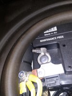 Bewegen Sie dann die Batterie ein wenig, lösen Sie den Pluspol und entfernen Sie ihn ganz unter dem Sitz.