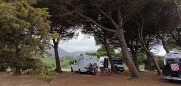 Anreise war über Livorno / Olbia, tagsüber. Grimaldi-ferry, oneway-ticket rd. 90€, 2 Personen, damals 6 m Camper.Wir standen auf Campinplätzen, Stellplätzen und überwiegend und am schönsten FREI, z. B. im Pinienwald am Strand oder bei kite-surfern.