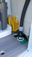 Eigentlich ist in der einstufigen Version das Problem: der Einstieg von der Stufe ins WOMO ist zu hoch. Der Abstand Gelände zur Stufe ist jeweils situationsbedingt unterschiedlich.