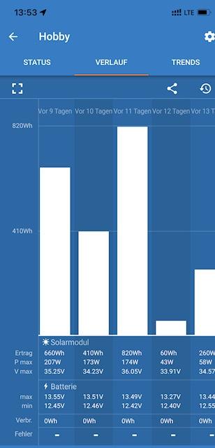 D.h. ist die Batterie voll und der Victron Laderegler schaltet ab und das Wohnmobil liefert Strom ins Hausnetz und steht dort zur Verfügung, wie Balkonkraftwerk.