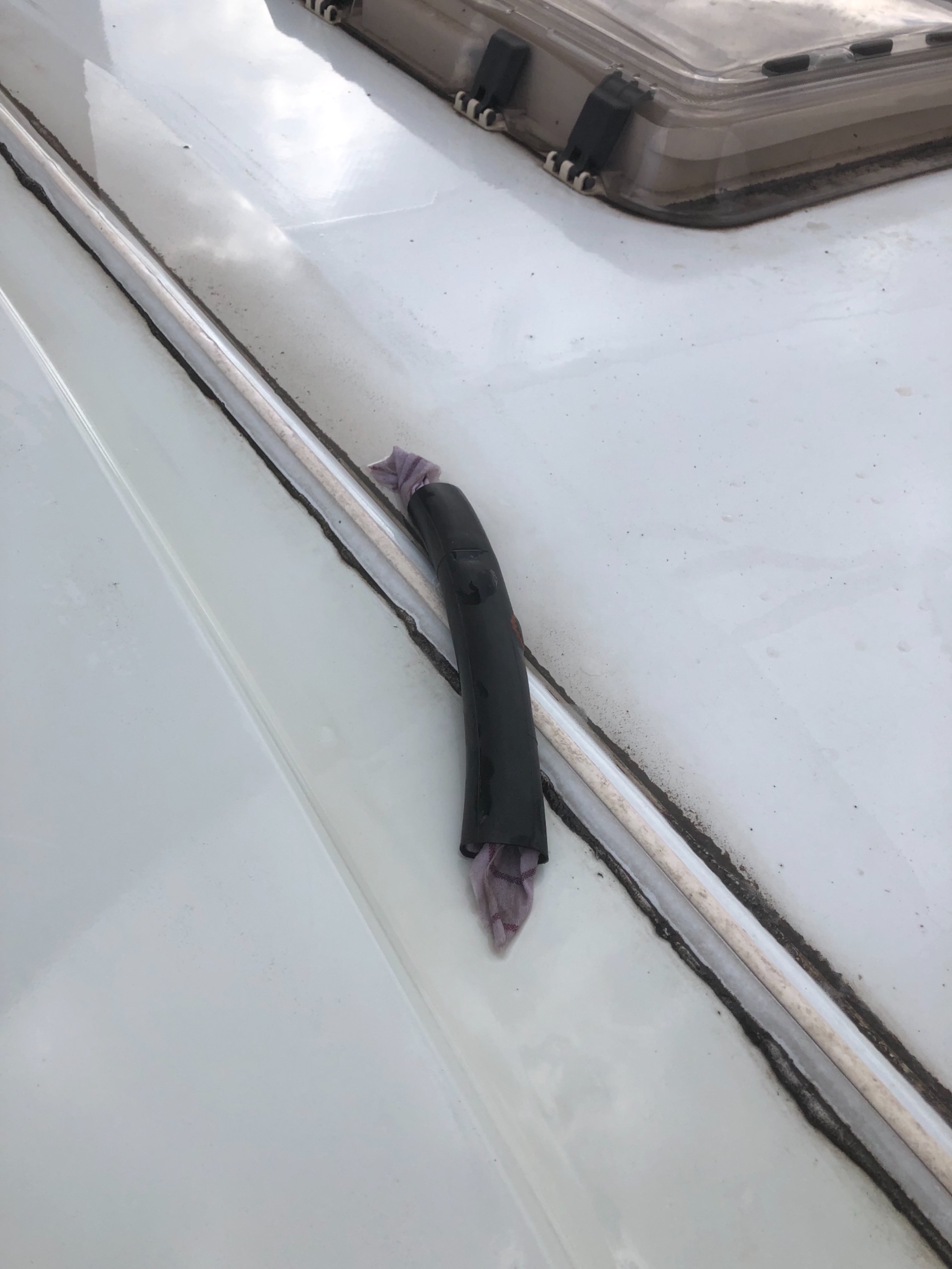 Bei Abfahrt hole ich den Schlauch vom Dach.