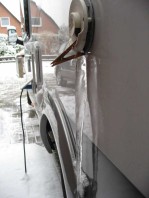 Abbrechen des Zapfen geht noch. Der Eispanzer auf der Außenhaut geht nicht mehr runter.