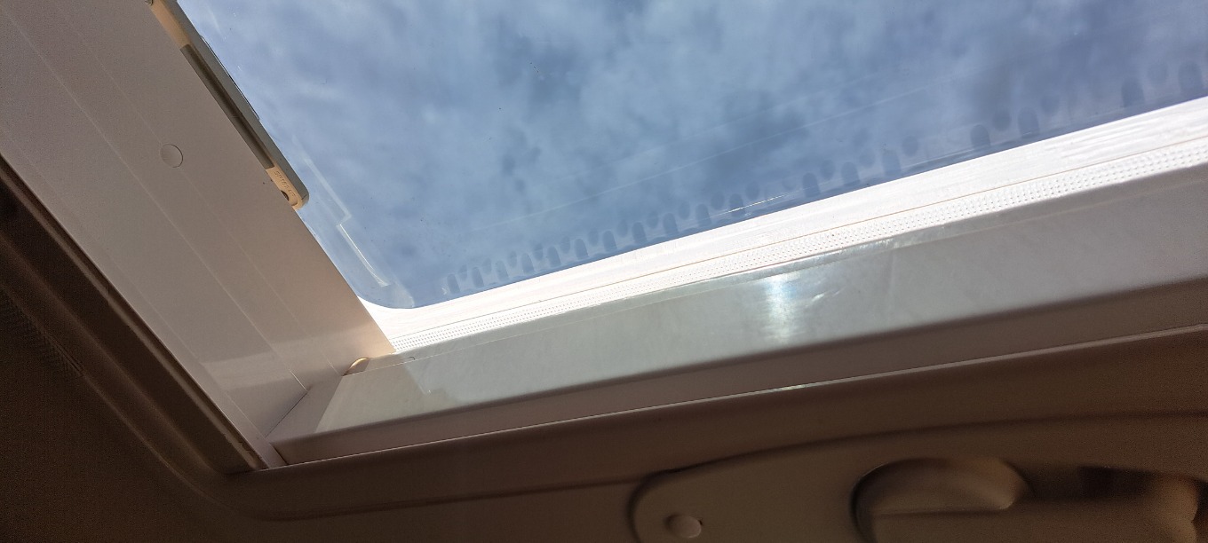 Moin, da es unter dem Skyroof so heiß wird, und das Verdunkelungsrollo ja nur für die Nacht ist, und ich hier gelesen habe, daß es jemand beklebt hat, bin ich zum Folierer gefahren und habe unsere Dachfenster alle in tief Schwarz folieren lassen. In diesem Zusammenhang, kann ich auch betätigen, das man das Skyroof einfach rausnehmen kann, man braucht nicht mal einen Schraubendreher, nur einen Stift mit den man die Verriegelungen vom Fenster trennt, dann das Fenster nach vorne klappen und hoch nehmen. Da die Fenster viele Sicken und Beulen hat, ist das bekleben über das ganze Fenster nicht möglich, man kann nur den Sichtbaren bereich bekleben. Und da uns das Ergebnis sehr gefallen hat haben wir die Seitenscheiben gleich mit gemacht. Wir waren dieses Wochenende unterwegs und wir hätten nicht gedacht daß das es so gut die Wärme abhält.