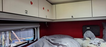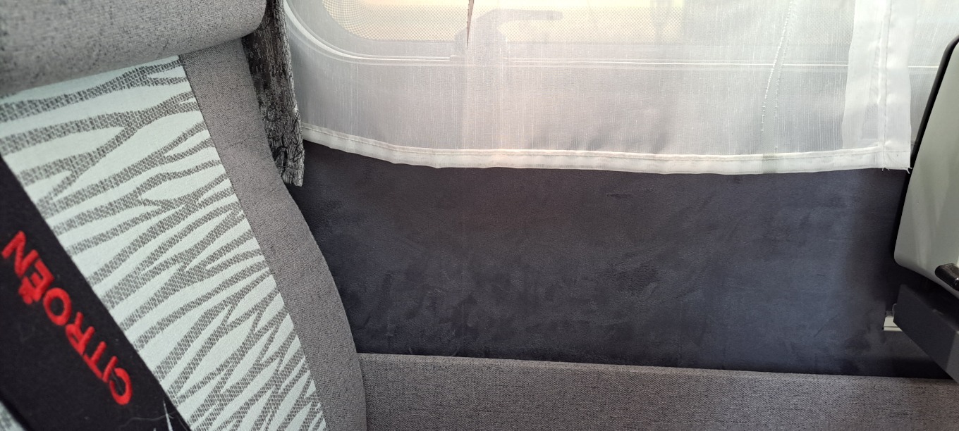 Moin, da uns die creme Farbenenwände im Camper nicht gefallen haben, und dieser komische auf stoß Übergeklebte streifen, immer dunkler wir, habe ich die Wände beklebt. Am Tisch im Alcantara in grau, war eine Schweine Arbeit, das Material ist halt für Amaturenbrett oder Konsolen, also sehr dehnbar, nur je mehr man zieht, je kürzer würd es. Ich habe es aber hinbekommen. Der Folierer hatte noch etwas Anthrazit übrig um die Küche damit zu verkleiden. Und da ich schon dabei war, habe ich gleich das Schlafzimmer mit gemacht. Nur diesmal habe ich mir d-c-fix aus dem Baumarkt gekauft und damit die Wände beklebt. In der Resteecke habe ich noch ein paar Holz Herzen gefunden die ich an die Schranktüren geklebt habe. Meine Frau war hin und weg, wir finden beide, das es den Camper mehr Eleganz verleiht.