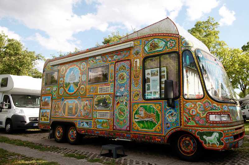 Ja das ist so eine Art Asienbemalung mit Tigern, Elefanten...Säbeln...Teppichmustern...und Nomaden in Zelten auf irgendwelchen Hochebenen in der Mongolei! Das Fahrzeug "räumt" immer die "Schönheitspreise" ab wo es zu Gast ist! Wir finden das Teil jedesmal wieder spannend und die Leute die es zum erstenmal wahrnehmen, können es immer gar nicht glauben, das hier ganz normale Handwerker ein Reisemobil mit soviel Hingabe bemalt haben! Da hat deine Elke aber fein aufgepasst Werner!