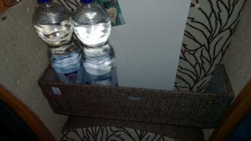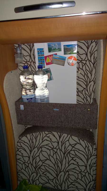 In diese Ablage passen jetzt 5 Wasserflaschen 1,5 Liter. Diese stehen dort fest und sicher.