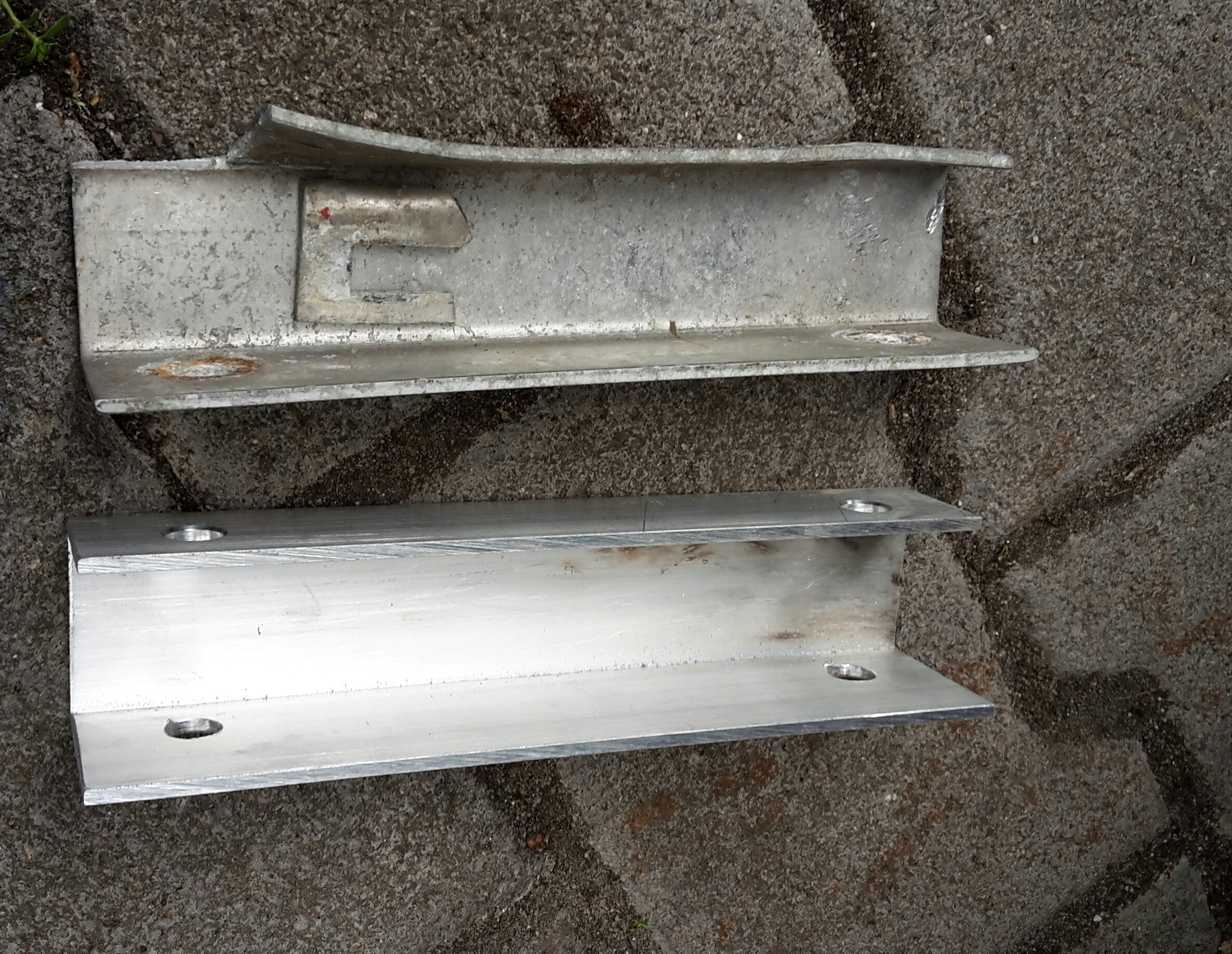 Zu Hause hab ich dann aus einem 4 kantrohr (Alu) die Halterung neu angefertigt. Da die Tür nach rechts öffnet wird immer die linke Seite mehr belastet.